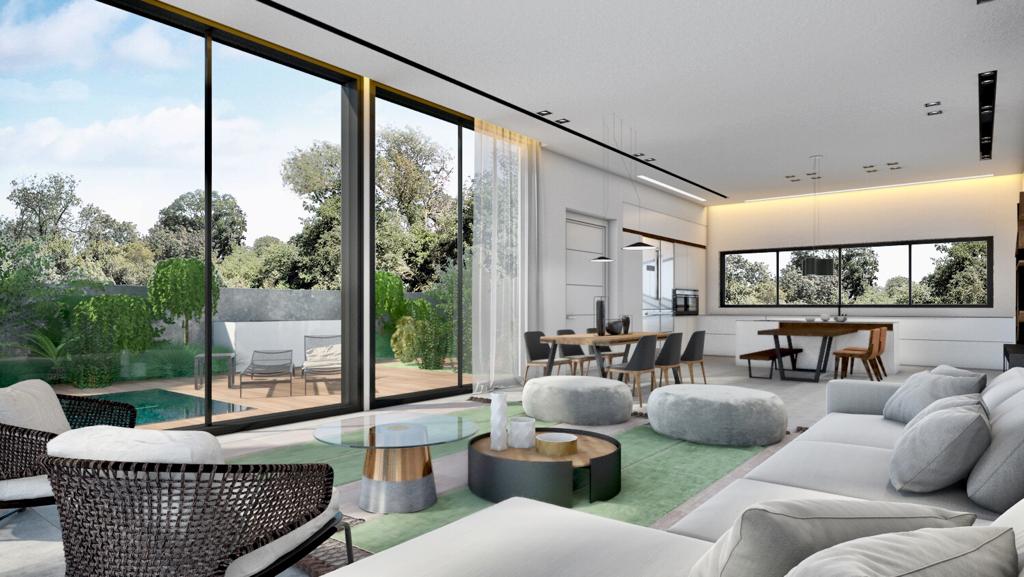 גם לפיתוח החוץ ניתנת תשומת לב מיוחדת והתייחסות למרחבי הצמחייה, לריצוף, לחיפויים ולריהוט החוץ בגינות בבתים הפרטיים, במרפסות הפנטהאוזים ובדירות הגן.